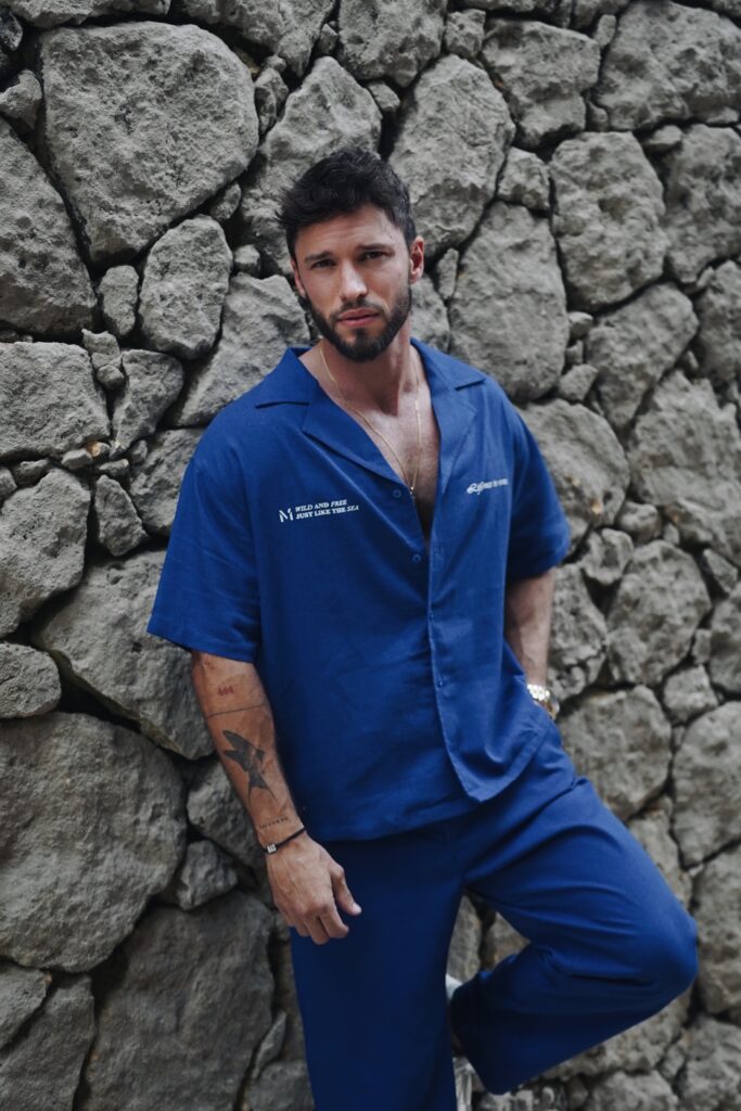 Conformado por dos piezas confeccionadas en lino Lan, una fibra reconocida por su confort y solidez. Su tono negro con bordado ha sido cuidadosamente elegido para resaltar las tonalidades de pieles morenas, trigueñas y blancas, especialmente en el contexto caribeño.